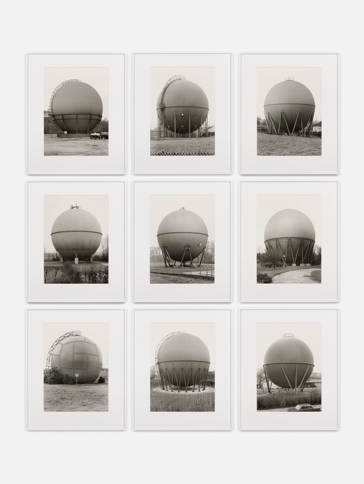 Bernd & Hilla Becher, Gas Tanks, 1963–1973, nine gelatin silver prints, 40 x 30 cm each, installed 172 x 142 cm, not available