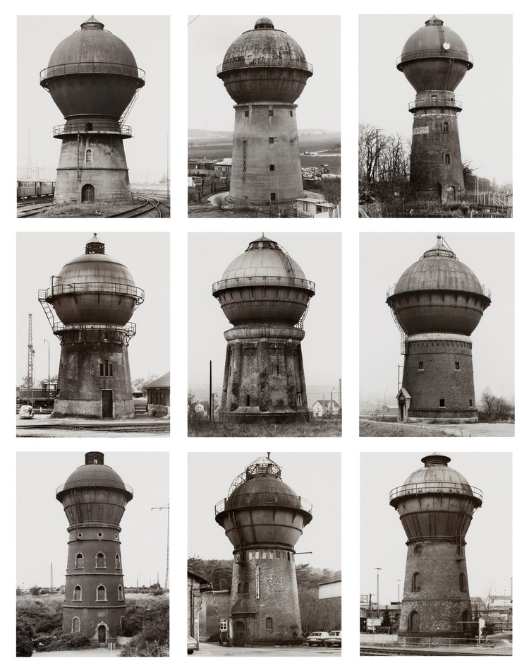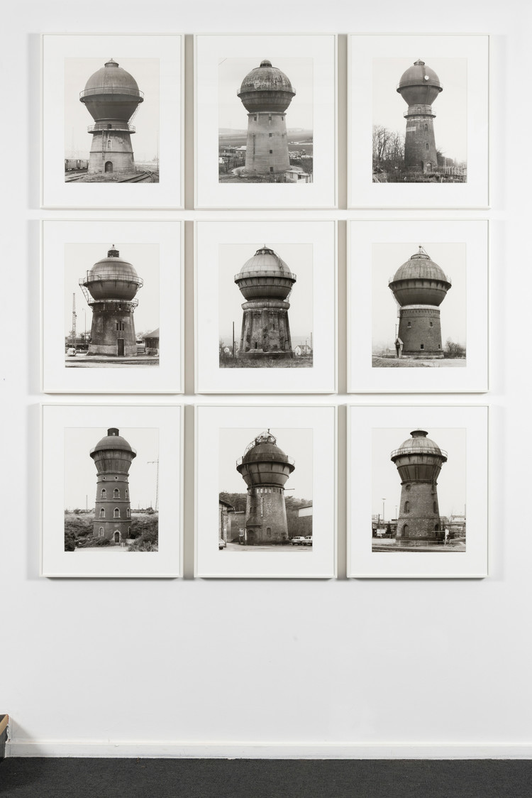 Bernd & Hilla Becher, Watertowers 1965-1982, 1988, nine gelatin-silver prints, 40 x 30,2 cm each, installed 168,9 x 142,9 cm, not available